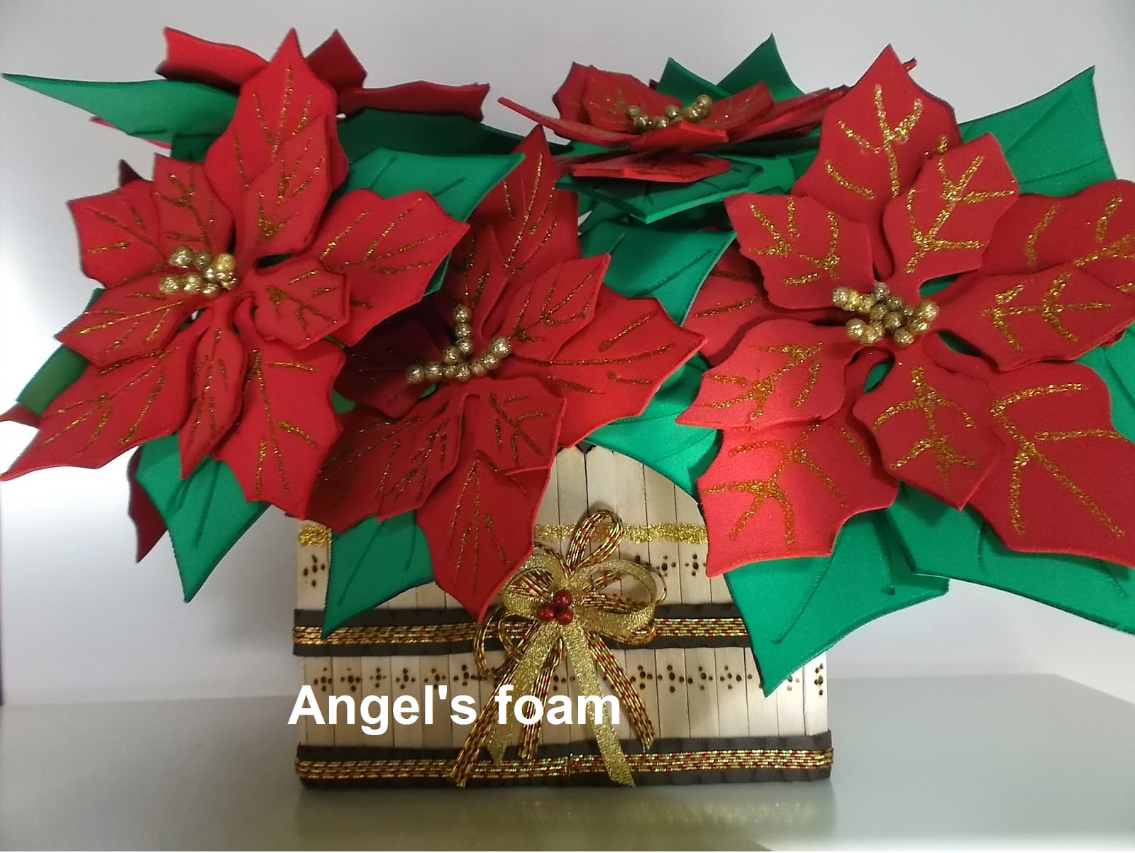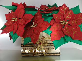 These pretty poinsettias were handmade with foam and wood, are used in most Christmas decorations.
